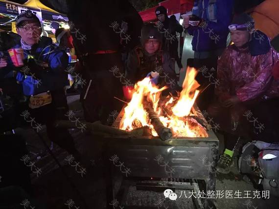 这个时候左腿的髂胫束也开始疼痛了,右侧大腿代偿做工很多,髂胫束也有酸胀感。时钟到了周六夜里10点,已经过去了14个小时。山里太冷了,再次向组委会的义工提出加衣服。我说这么冷不敢出发了,义工说你不走可以退赛,叫辆出租车把你拉走。我怎么会退赛啊,我就没有退赛经验。烤火烤了半小时.