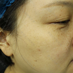 患者为遗传性雀斑,中面部雀斑集中较多。