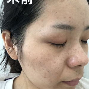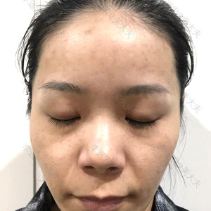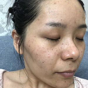 治疗后的第5天脸上都开始结痂了,现在洗脸的时候我都是清水洁面,家里的洗面奶是磨砂的,刺激性高没太敢用,出门的话我基本上都戴口罩,或者涂完防晒在出门,不这样很容易造成脸部色沉,附上一张恢复期的图片让大家参考一下吧。