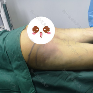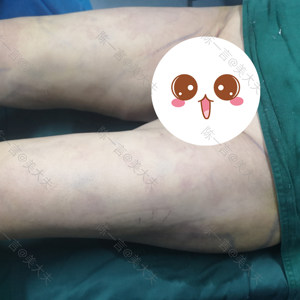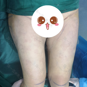 术后即刻,从大粗腿变得纤细了许多。术后效果很满意,期待回复好穿美美的衣服呀!哈哈