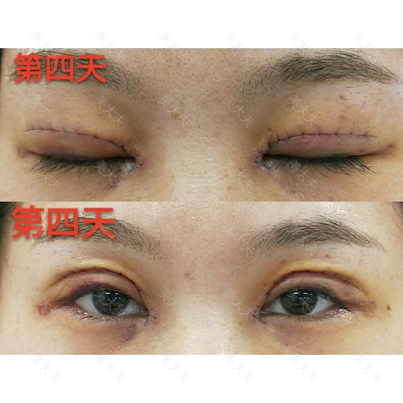 术后即刻就开始冰敷了、24小时后揭掉纱布、内心还是很忐忑的、术后第三天本来应该是最肿的时候、我就去上班了、现在想可真是英勇。。。但是同事都说还好、不是很肿、感觉挺成功的。术后一个月去姐妹婚礼、就可以化妆了、看着非常自然、像妈生双眼皮一样!现在术后4个月了、已经什么都吃、毫不顾忌了、选晓波医生真的没错!好几个姐妹跟我说想找他手术或修复的了!