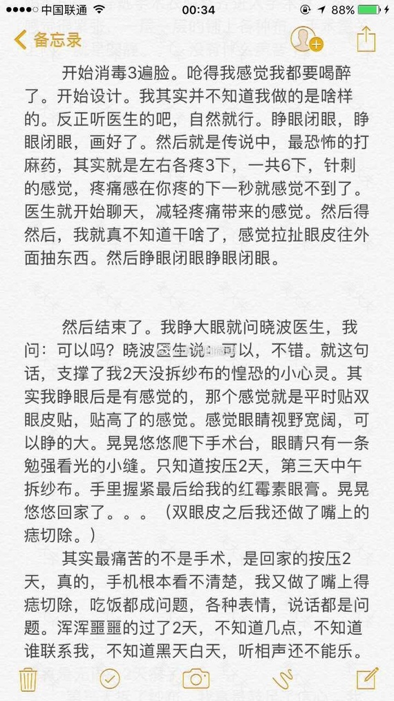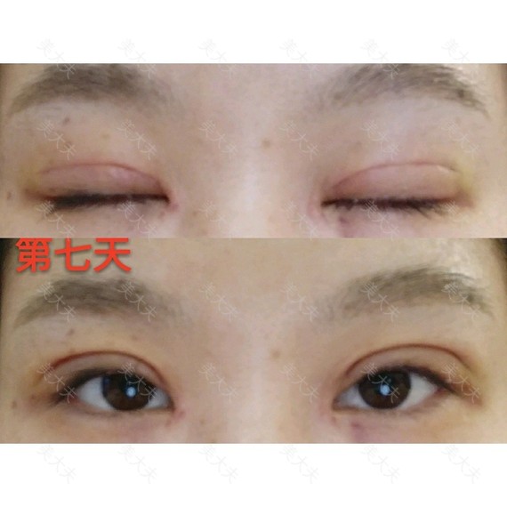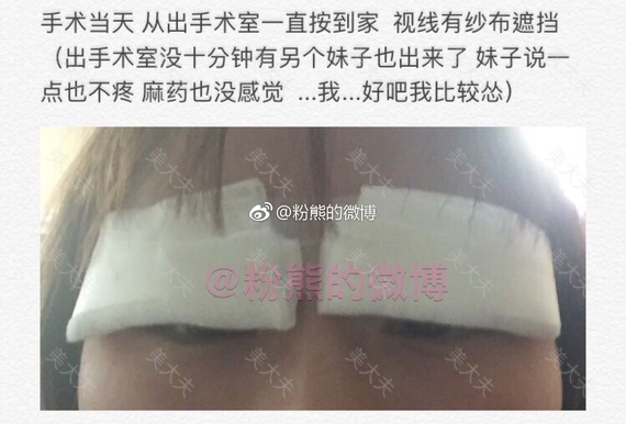 术后第二天就上班了,戴着纱布,还改了几百份期末考试卷,带了七天墨镜上班。可能眼睛比较劳累,所以消肿不太好。我前三天一直怀疑自己失败了。前三天很肿,第四天开始消肿。