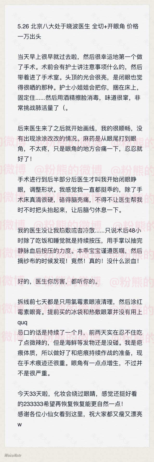 #粉熊的微博一双眼皮投稿# 5.26 北京八大处于晓波医生 全切+开眼角 扇形7mm 价格一万出头