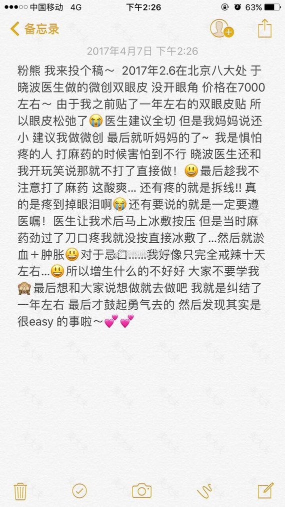 #微博投稿一一双眼皮#2月6日在北京八大处于晓波医生处做的微创双眼皮,没开内眼角,价格7000左右。