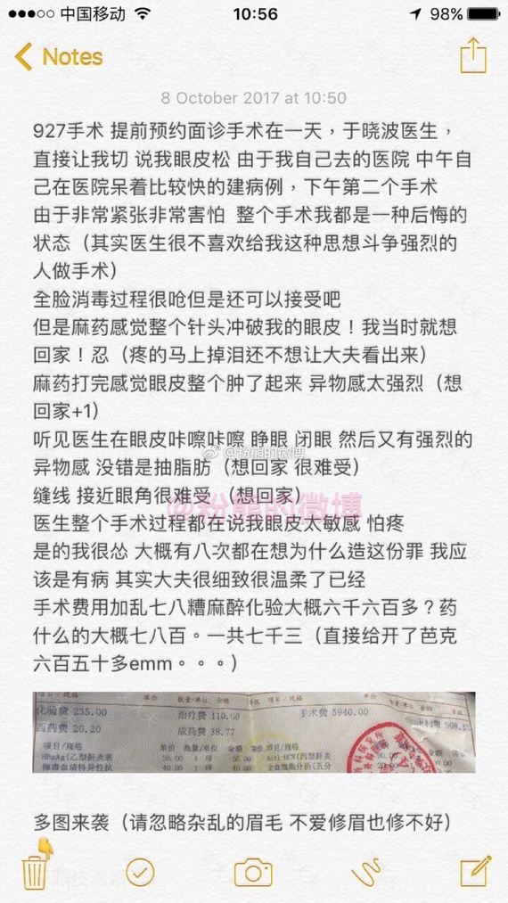 #粉熊的微博一双眼皮投稿#2019年9月5日, 八大处,于晓波医生,全切去皮去脂,9840元~#微博投稿一一双眼皮##整形案例#
