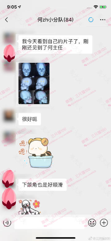 关于她文案中所提到的一侧偶尔笑时会疼,有麻木感,是每个群都有人发生的。昨天张智勇原院总还科普过,麻木感一年左右恢复。