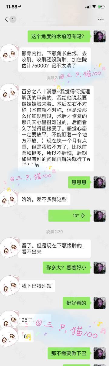 她觉得美中不足的是,医生的方案里有取颊脂垫这一项,但她没有取,后悔没听医生的取了。还有就是她的下颌角区域只劈了外板,下颌角医生觉得原生的就很好看,所以没有截骨,但她觉得自己的原生下颌角弧度不好看。