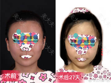 妹子是昨天27天,跟我说觉得好像下垂了,我看她效果很好,问她要的投稿儿。她要娃娃脸,对自己的27天效果80%满意。下颌角做的是留角款,现在肿着看不出来。