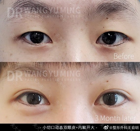 术后三个月,呈现自然内折日式重睑,闭眼痕迹即将消退,内眦角无痕迹。