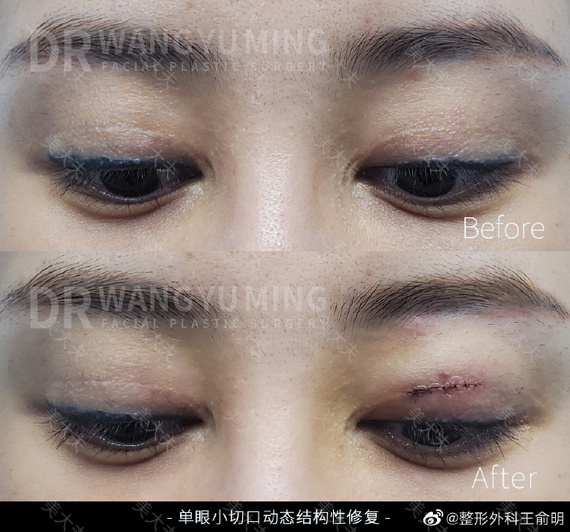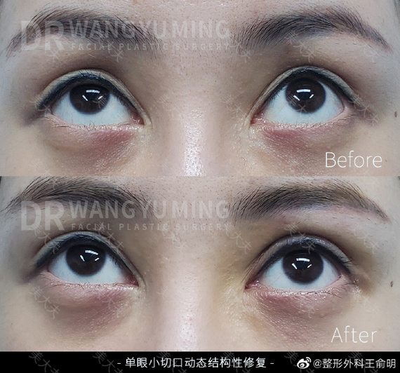 2、图34为第二次修复,术后三个月右眼(画圈位置),轻度不对称,形态欠流畅,使双眼黑眼球暴露程度不一,右眼视觉上有些凶悍。进行小切口单眼修复,术后即刻轻度肿胀,双眼对称。过段时间我会更新后续恢复。