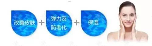 皮肤的湿润水平与透明质酸含量密切相关,随着年龄的增长,皮肤中透明质酸含量降低,使皮肤保水功能减弱,产生皱纹。注射透明质酸可以防止脱水,促进组织细胞再生,紧致肌肤、长久保湿的功效,用于祛皱。同时,透明质酸可以快速与细胞发生水合作用,保持细胞水分,因此常用作补水保湿的水光注射。