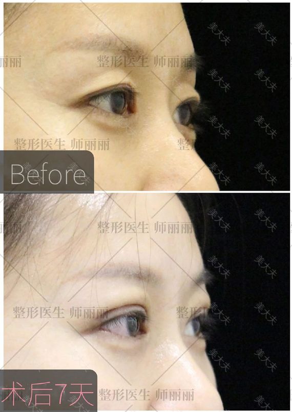术前眼窝凹陷,眼皮松弛,一侧双眼皮已有变内双的趋势。我们采用S-ACC技术为其修复,术后7天上眼皮饱满,眼型温柔,睁眼有神!