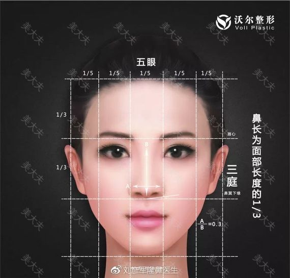 整体来说,鼻子的长度占脸的1/3,鼻翼的宽度占到脸的1/5。那么鼻子不能太长、不能太短,不能太宽也不能太窄。它与脸型的关系基本符合三庭五眼的比例关系。充分注重这些基本的美学关系,就能做出比较标准的鼻子,比较好看。