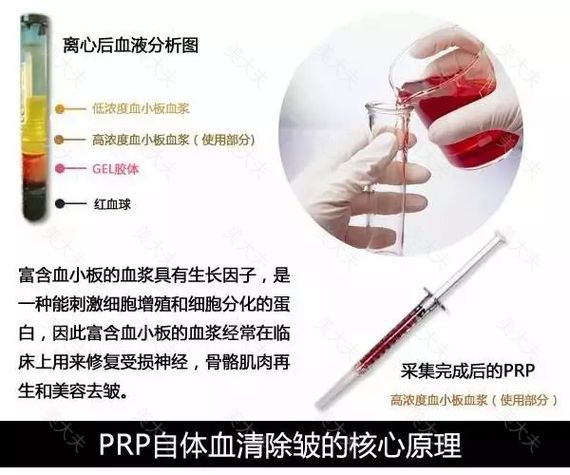 PRP自体富血小板血浆修复的原理,是抽取自身血液,经过高速离心后得到多种生长因子,注射后促使肌肤新生而成,最大限度提高血细胞活性,富含大量的胶原蛋白生长因子、弹性纤维生长因子、血管上皮生长因子等8种增加肌肤活力的皮肤生长因子,对损坏的细胞进行修复,对老去的细胞进行再生,使皮肤恢复细腻光泽、弹性紧致的年轻态。