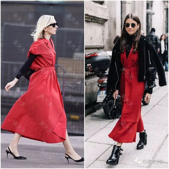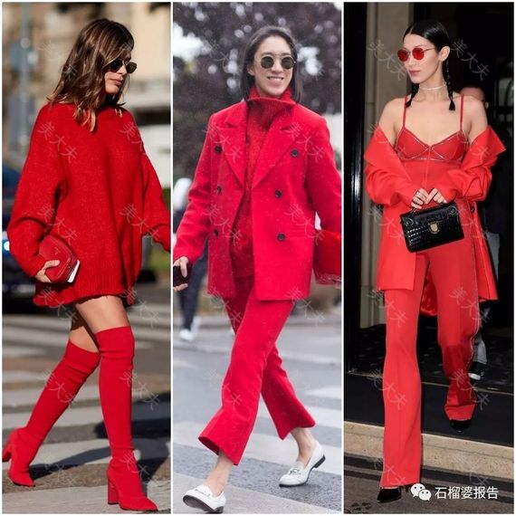今天说说红色配色,毕竟99%的仙女不可能跟下图这些时髦女郎一样,穿成一只红灯笼。