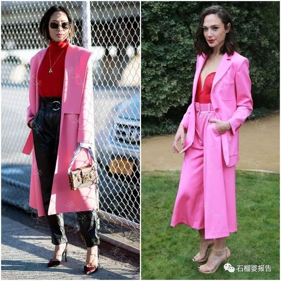 要说红粉佳人的穿搭原则,一个是把红色穿在粉色里面。