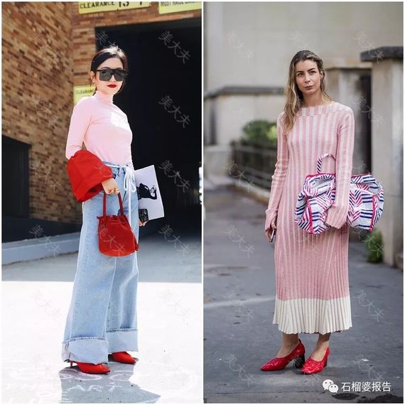 也可以粉色衣服 + 时髦小红鞋,看上去那是相当和谐。