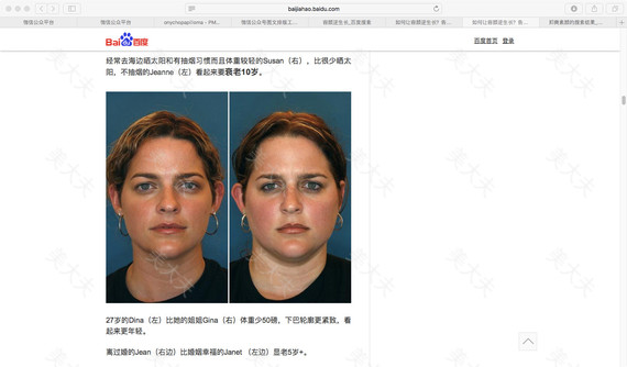 27岁的Dina(左)比她的姐姐Gina(右)体重少50磅,下巴轮廓更紧致,看起来更年轻。