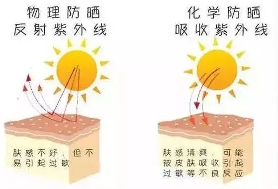 物理防晒剂对皮肤的刺激性小,更适合皮肤容易过敏的人,缺点是可能存在泛白,油腻的问题。化学防晒剂的好处就是肤感好,一般不泛白,不油腻,适合爱美的女士们。安全角度来讲,物理防晒剂更安全。