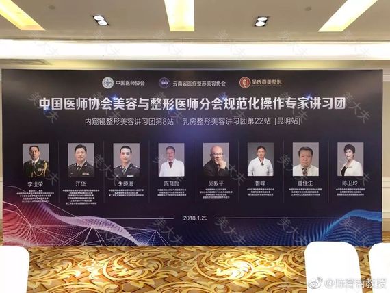 2018年1月20日,陈育哲教授受邀参加在昆明举办的,由中国医师学会美容与整形医师分会主办的“中国医师协会美容与整形医师分会规范化操作专家讲习团”。