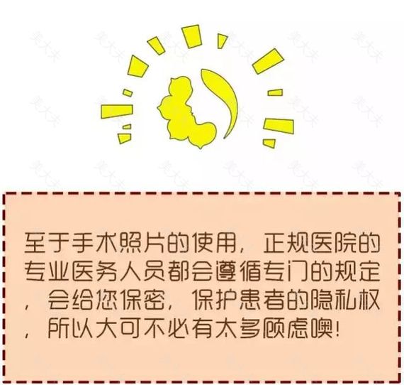 至于手术照片的使用,正规医院的专业医务人员都会遵循专门的规定,会给您保密,保护患者的隐私权和肖像权,所以大可不必有太多顾虑呦!