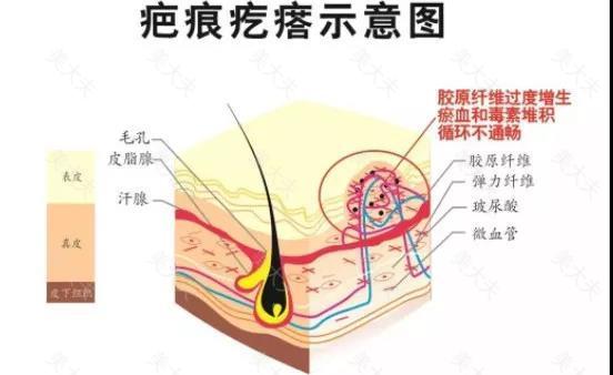 疤痕疙瘩是皮肤伤口愈合或不明原因所致的一种过度生长的异常组织。疤痕疙瘩常隆起于皮肤表面,界限不规则,呈蟹足状生长,常伴随不定时发作的疼痛和刺痒症状,具有不断生长并侵犯周围正常组织的潜在趋势,易复发。