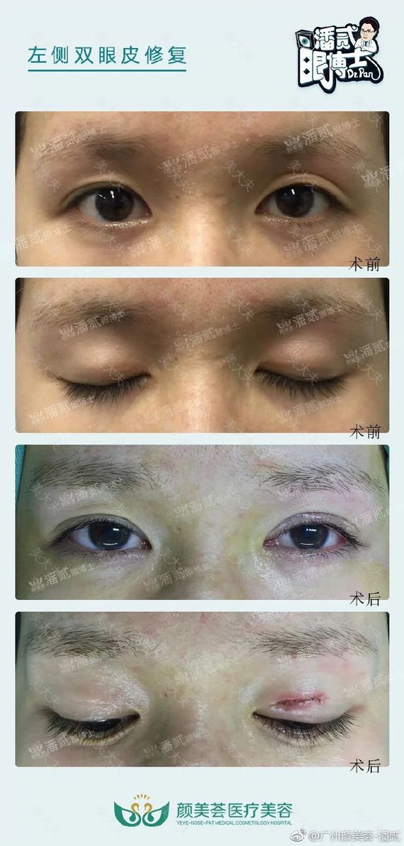 本案例比较复杂,是早期修复,做了双眼皮修复+左侧降肌+右外侧降肌+右内侧提肌+自体脂肪填充。