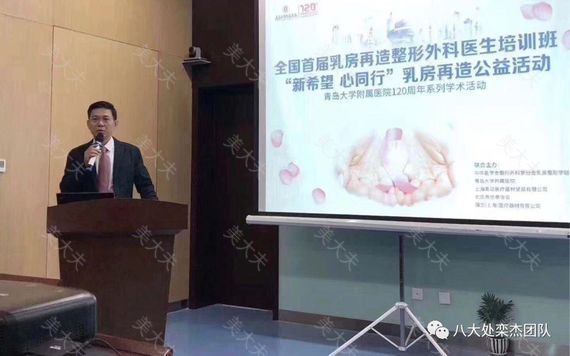 2018年11月16日,全国首届乳房再造整形外科医生培训班暨“新希望、心同行”乳房再造公益活动在青岛成功举办。此次活动由中华医学会整形外科学分会乳房学组主办,作为青岛大学附属医院120周年系列学术活动之一,邀请国内顶级乳房再造专家进行授课及手术演示,并为三位乳腺癌患者进行乳房再造公益手术,取得了积极、热烈的社会反响。