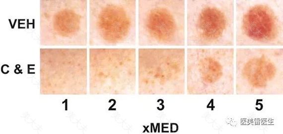 再使用2倍-10倍最小红斑量的紫外线强度(MED)照射皮肤,