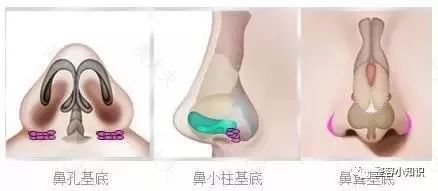 鼻翼基底位于鼻唇沟上部与鼻翼交界的三角区域。鼻小柱是两个鼻孔中间的部分,鼻小柱基底就是鼻小柱下方区域。鼻孔基底即为鼻孔下方与上唇相接的区域。