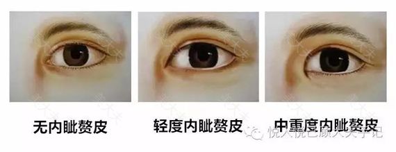 我们东方人一般都有或轻或重的内眦赘皮,如下图所示:位于内眼角前方的一段遮盖住内眦角的皮肤皱襞。对于内眦赘皮情节严重的人,自身的重睑不完整,眼裂相对短小,整体眼型不美观。这类人如果只做双眼皮手术而不加开内眼角,反而会加重眼裂短的缺陷,成为名符其实的“肚脐眼”。