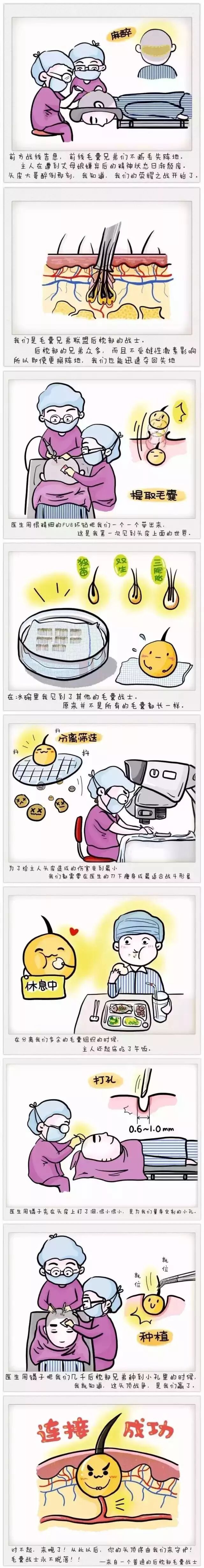 莫慌,毛发移植拯救大家!我们现在做的比较多的是FUE毛发移植,FUE毛发移植术采用精密器械从后枕部采集健康毛囊,种植到脱发区使其成活,成活后的头发保留原有头发的一切生长特性,与原发无异。手术属于微创小手术,成活率高。