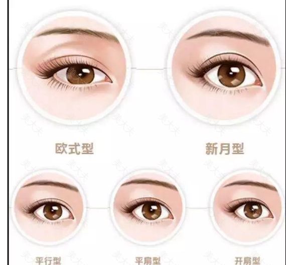 一般来说,双眼皮有欧式型、新月型、平行型、平扇型、开扇型五种。每个人脸型和眼睛的局部条件不同,医生会根据眼睛条件去设计形态。