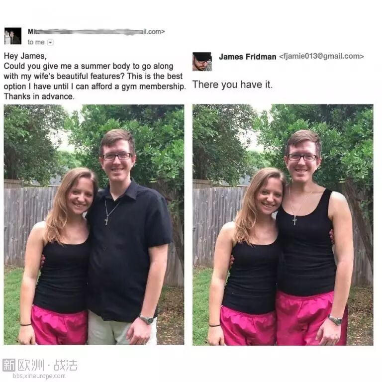 推特上一个Photoshop大神James Fridman,大家都特别喜欢艾特他,让他帮忙修图,并附上自己的要求。