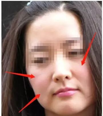 苹果肌微笑时才会有,因此,高颧骨的妹子要注意区分。苹果肌的特点是圆润、光泽,如下图所示: