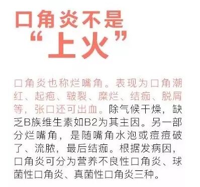患者需要注意的是,口角炎并不是人们俗称的“上火”。不同口角炎有不同临床表现及处理方式.