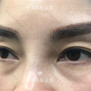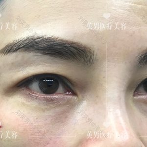 术后即刻效果,眼袋、泪沟都没有了,效果立竿见影,几乎不肿