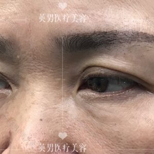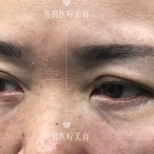 术后即刻效果,眼袋大包没有了,很平整,几乎不肿