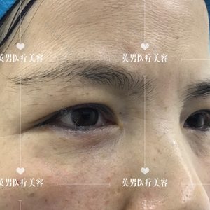 术后即刻效果,大眼袋没有了,。泪沟也平整了,整个过程很顺畅、轻松,几乎不肿
