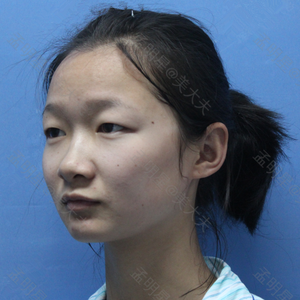 单眼皮,眼角下崔,上眼睑下垂导致露睛度不够。