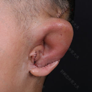 这是孩子做完新耳朵后的第5天,此时耳朵已经开始肿起来了,轮廓已经不是很清晰了,但是当初孩子刚出手术室时,轮廓还是很好看的,所以相信等孩子恢复一段时间后,轮廓就会重新变好的。