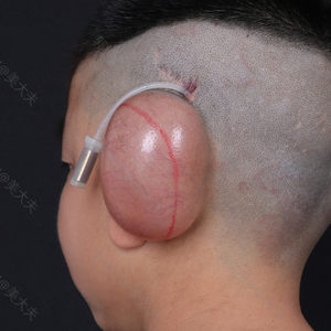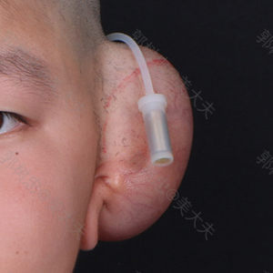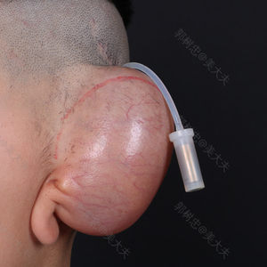 这是我家孩子注水扩张三个月后,来院准备做耳再造第二期手术,此时皮肤的量已经扩张的很充分,皮肤也已变薄。 注水期间,医护人员与患者及家长保持紧密联系,指导家长顺利的完成注水。 郭树忠教授面诊后决定进行二期手术。