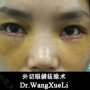 手术时让我躺在手术台上,心跳突然加速,身体不自主抖个不停,医生一直安慰,但是就是控制不住,还好没多久手术结束,术后眼周比较肿胀淤青,感觉下眼皮有点牵扯,其余没啥不舒服,除外,医生还让我滴眼药水,