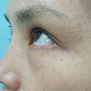术后由于组织肿胀会导致短暂的下睑轻度外翻,会有眼睛干涩的感觉,所以嘱咐患者坚持滴眼药水,保持眼球湿润,防止暴露性角膜炎