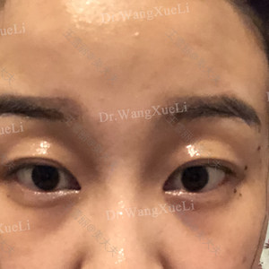求美者术后睁眼不再抬眉,正常睁眼,求美者瘢痕增生较严重,局部封闭治疗后好转