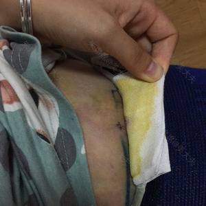 拆线后第三天,伤口部分开始结疤,腿子还是肿的腿围这几天下降也不明显,有点焦虑。