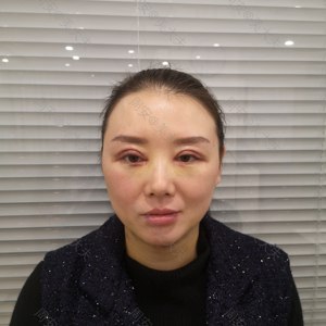 术后即可,眼睛变大了,双眼大小对称,现在的眼睛肿胀期,但是还是很美,双下巴也没有了,脱变成了小V脸,一下感觉年轻了10多少呀,周安博士的技术真是厉害。静静等消肿中。