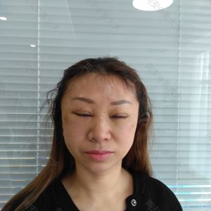 7天了,今天来拆线,眼睛也没有那么肿了,眼睛漂亮很,整体脸部看起来只有30岁。太美了。