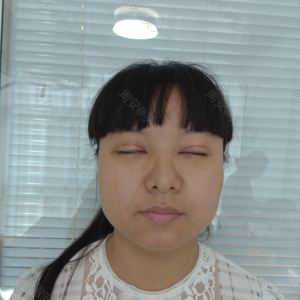 双眼轻度下垂,双面无神