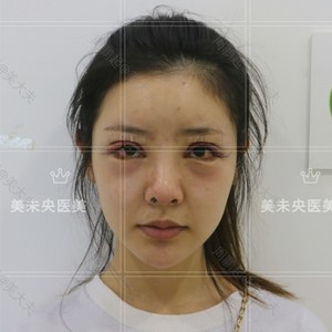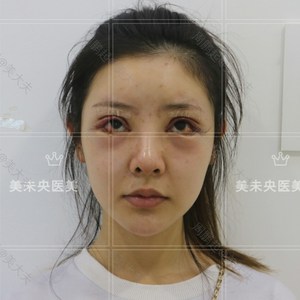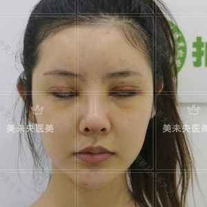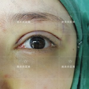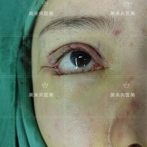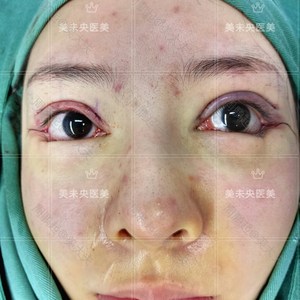 给大家发一些术前划线图和术中术后即刻照,宝宝们看到没有怎么出血,眼睛有轻微淤青肿胀是正常的,恢复就好了,下至不需要缝线,外眼角和双眼皮要等一周再拆线。手术是局麻的,只有打麻药的时候有些胀痛,整个人是清醒的,但感受不到痛,只有轻微的牵扯感,中途有点累还小睡了一觉,医生护士都很好,很亲切,缓解了我的紧张。